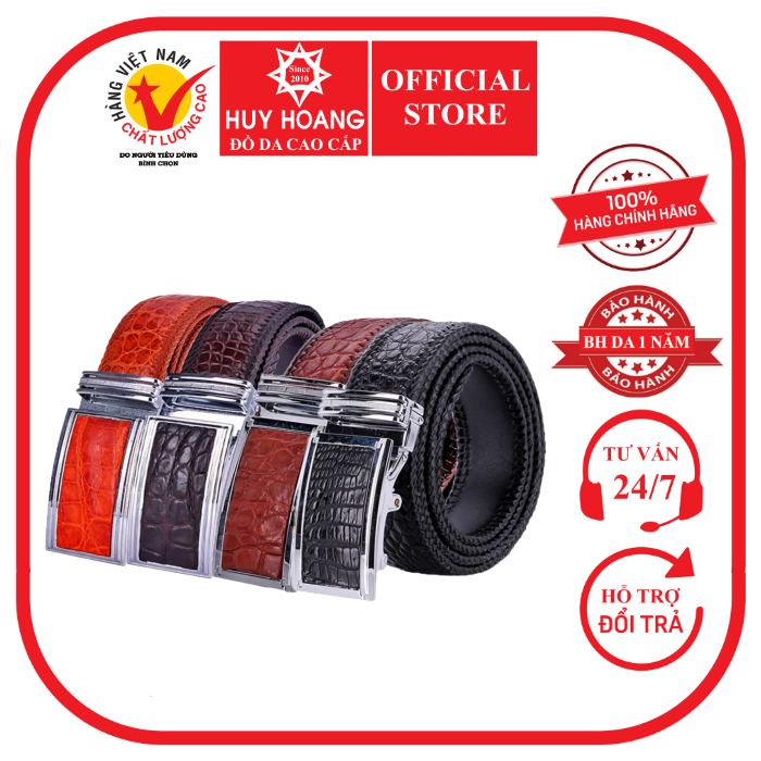 - Thắt lưng nam Huy Hoàng là loại thắt lưng được làm và xử lý công nghệ hiện đại từ da cá sấu thật 100%.