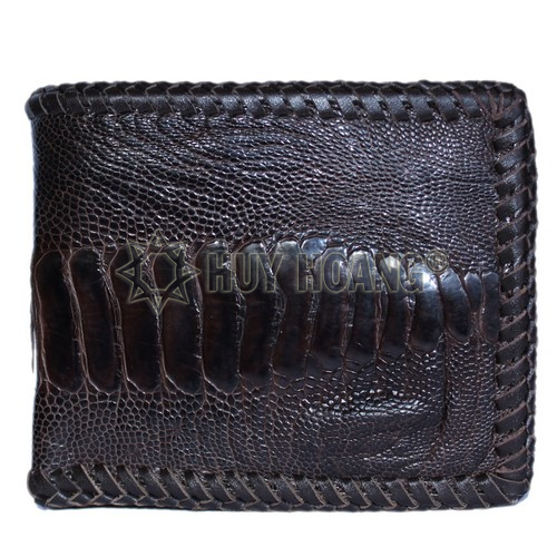 - Tên sản phẩm: Bóp nam Huy Hoàng da đà điểu da chân đan viền màu nâu đất