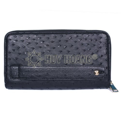 - Tên sản phẩm: Ví cầm tay da đà điểu Huy Hoàng nhiều ngăn màu đen