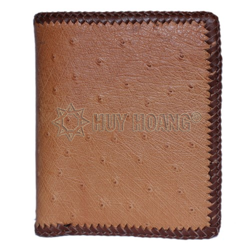 Bóp nam da đà điểu da bụng kiểu đứng đan viền màu vàng bò HD2462