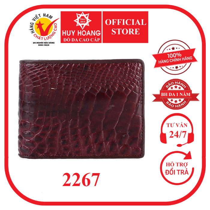 Bóp nam Huy Hoàng da cá sấu ngăn sau màu đỏ đô HD2267