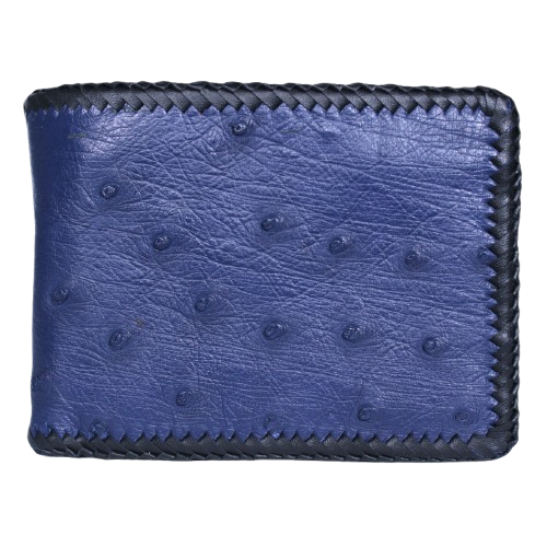 Bóp nam da đà điểu da bụng đan viền màu xanh đậm HD2463