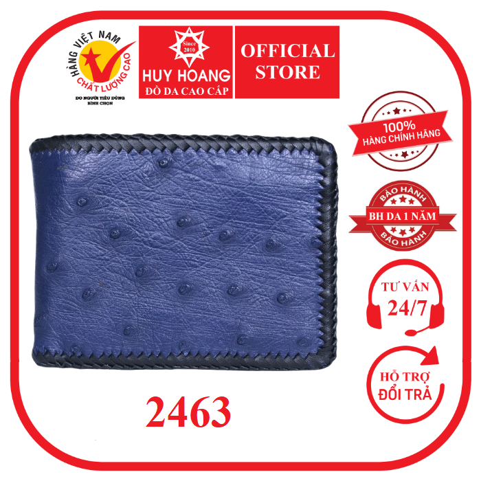 - Bóp nam Huy Hoàng được làm bằng chất liệu da đà điểu cao cấp tạo kiểu dáng lạ mắt, sang trọng.