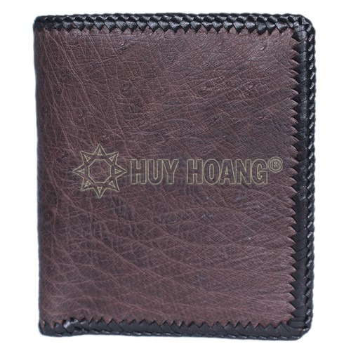 - Tên sản phẩm: Bóp nam Huy Hoàng da đà điểu da bụng kiểu đứng đan viên màu nâu đất
