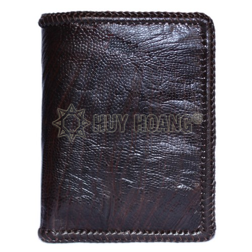 - Tên sản phẩm: Bóp nam Huy Hoàng da đà điểu da trơn đan viền kiểu đứng màu nâu đất
