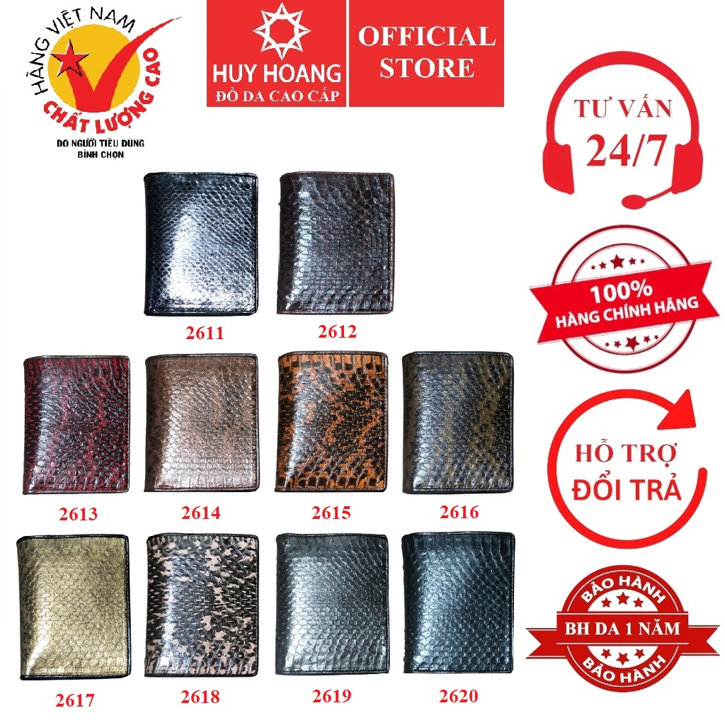 - Bóp nam Huy Hoàng được làm bằng chất liệu da rắn biển cao cấp tạo kiểu dáng lạ mắt, sang trọng.