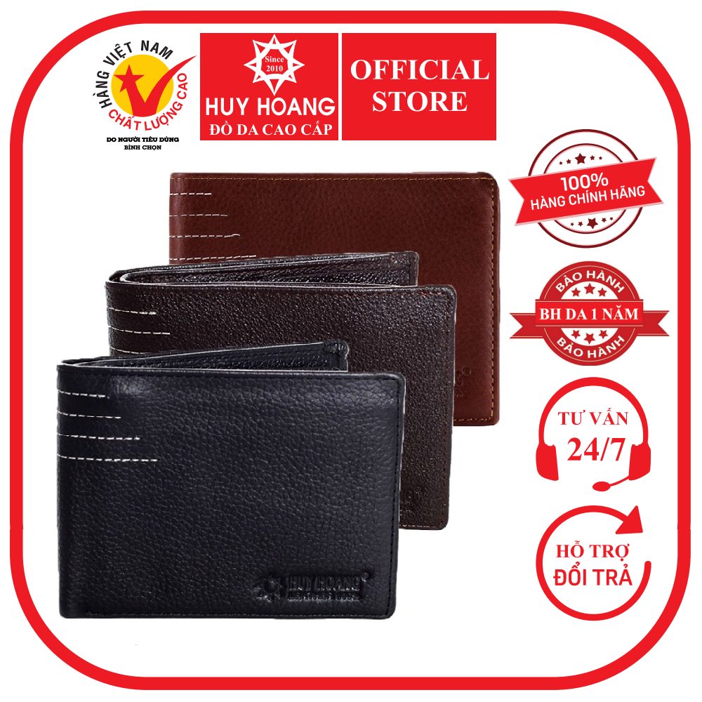- Bóp nam Huy Hoàng được làm bằng chất liệu da bò cao cấp tạo kiểu dáng lạ mắt, sang trọng.