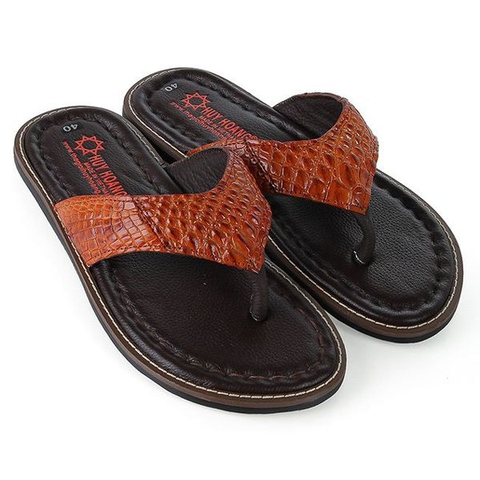 - Dép nam Huy Hoàng được làm từ chất liệu da cá sấu thật 100% nên càng sử dụng lâu bề mặt da sẽ càng bóng đẹp tự nhiên. Da cá sấu mềm mại sẽ hạn chế tối đa tình trạng trầy xước và gãy da khi sử dụng lâu ngày.