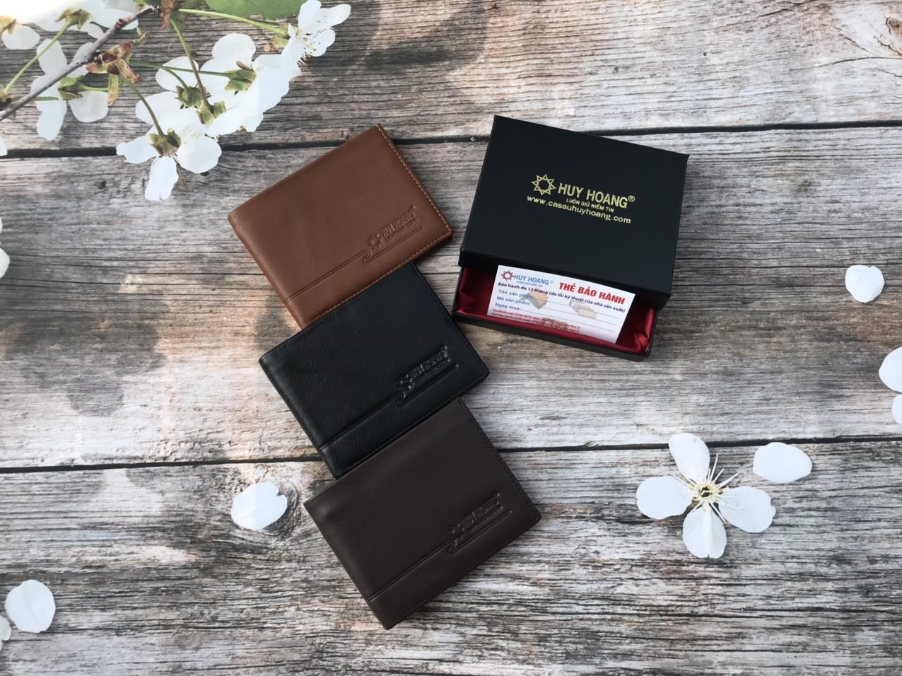 - Bóp nam Huy Hoàng da bò với quy trình sản xuất tại xưởng bởi thợ thủ công tay nghề cao, thiết kế hợp thời trang, đảm bảo độ bền.
