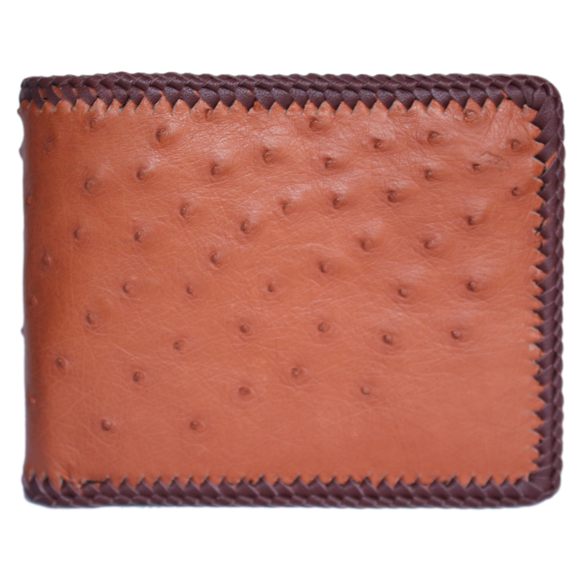 - Tên sản phẩm: Bóp nam Huy Hoàng da đà điểu da bụng đan viên màu nâu đất