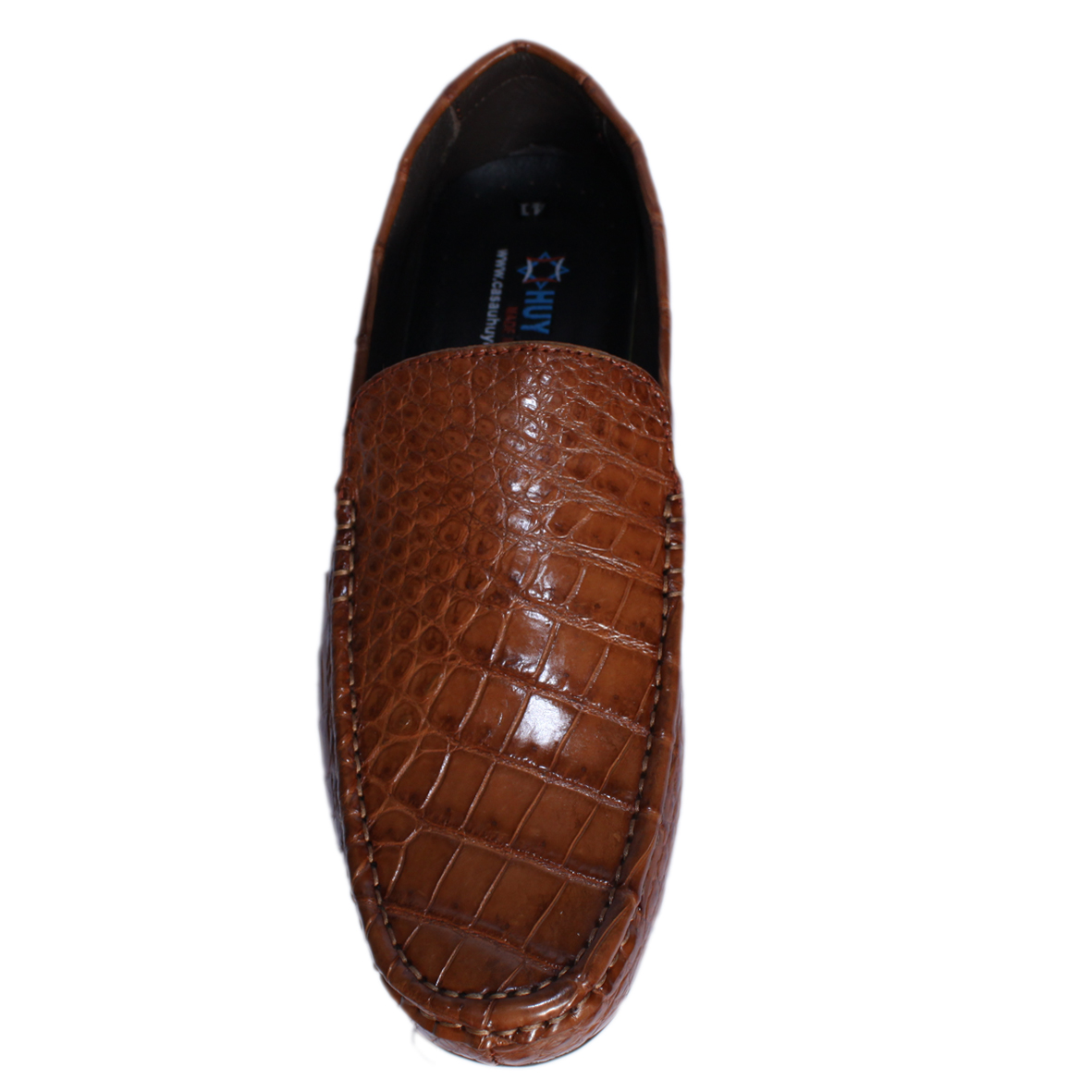 - Giày nam Huy Hoàng được làm từ chất liệu da cá sấu thật 100% nên càng sử dụng lâu bề mặt da sẽ càng bóng đẹp tự nhiên. Da cá sấu mềm mại sẽ hạn chế tối đa tình trạng trầy xước và gãy da khi sử dụng lâu ngày.