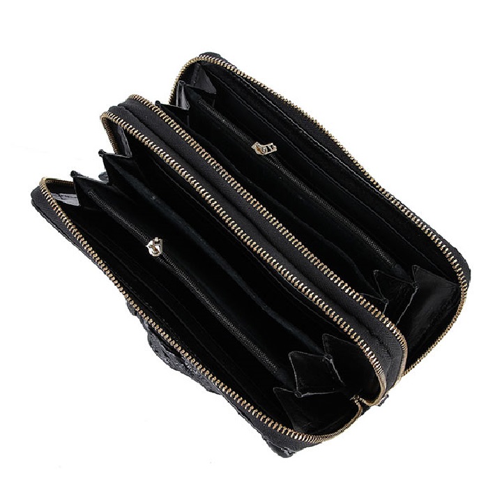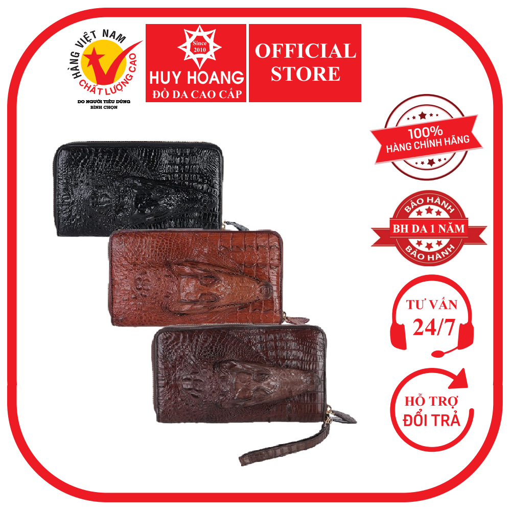 - Tên sản phẩm:Ví nữ da cá sấu nhiều ngăn đầu cá sấu màu đen, nâu đất, vàng bò, nâu đỏ.