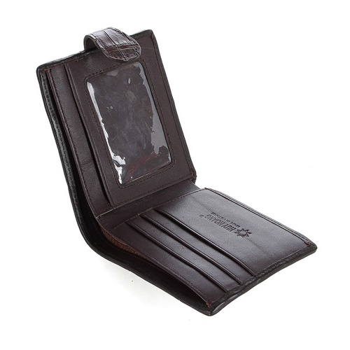 Bóp nam da cá sấu nút bấm màu nâu đất HD2244