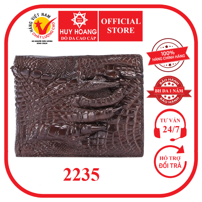 - Bóp nam Huy Hoàng được làm bằng chất liệu da cá sấu cao cấp tạo kiểu dáng lạ mắt, sang trọng.