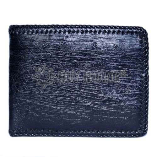 - Tên sản phẩm: Bóp nam Huy Hoàng da đà điểu da bụng đan viên màu đen