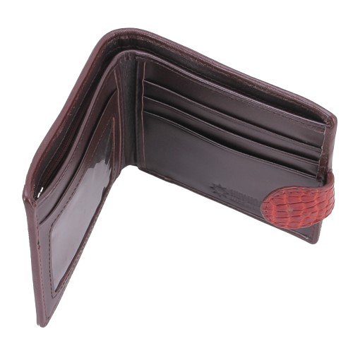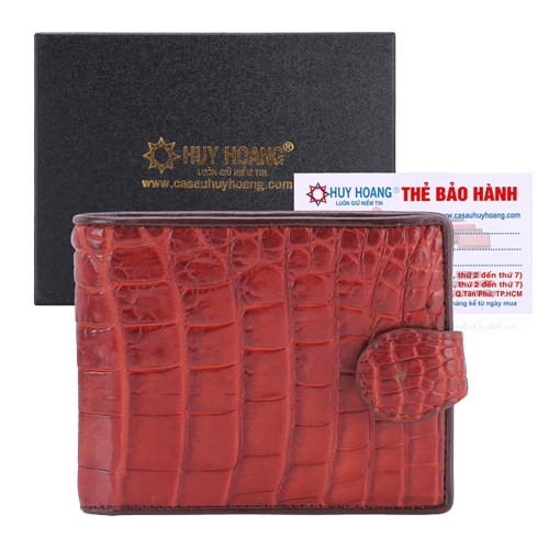 Bóp nam da cá sấu nút bấm màu nâu đỏ HD2217