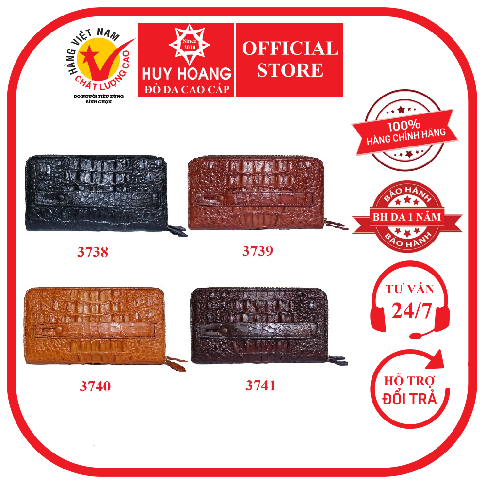 - Tên sản phẩm: Ví da cá sấu Huy Hoàng nhiều ngăn cầm tay màu đen