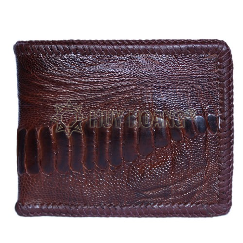 - Tên sản phẩm: Bóp nam Huy Hoàng da đà điểu da chân đan viền màu nâu đỏ