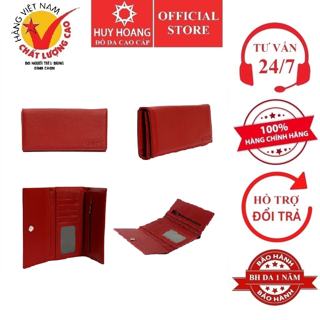 - Ví nữ Huy Hoàng được làm bằng chất liệu da bò cao cấp tạo kiểu dáng lạ mắt, sang trọng.
