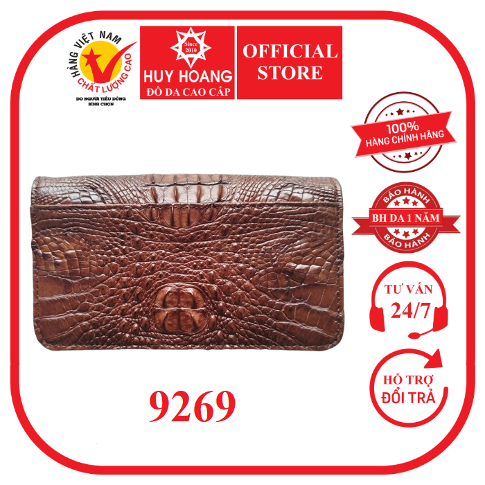 - Ví đựng điện thoại Huy Hoàng da cá sấu với quy trình sản xuất tại xưởng bởi thợ thủ công tay nghề cao, thiết kế hợp thời trang, đảm bảo độ bền.
