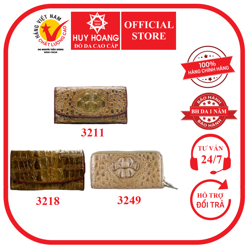 - Ví nữ da cá sấu Huy Hoàng được may từ chất liệu da cá sấu, với quy trình sản xuất tại xưởng bởi thợ thủ công tay nghề cao.